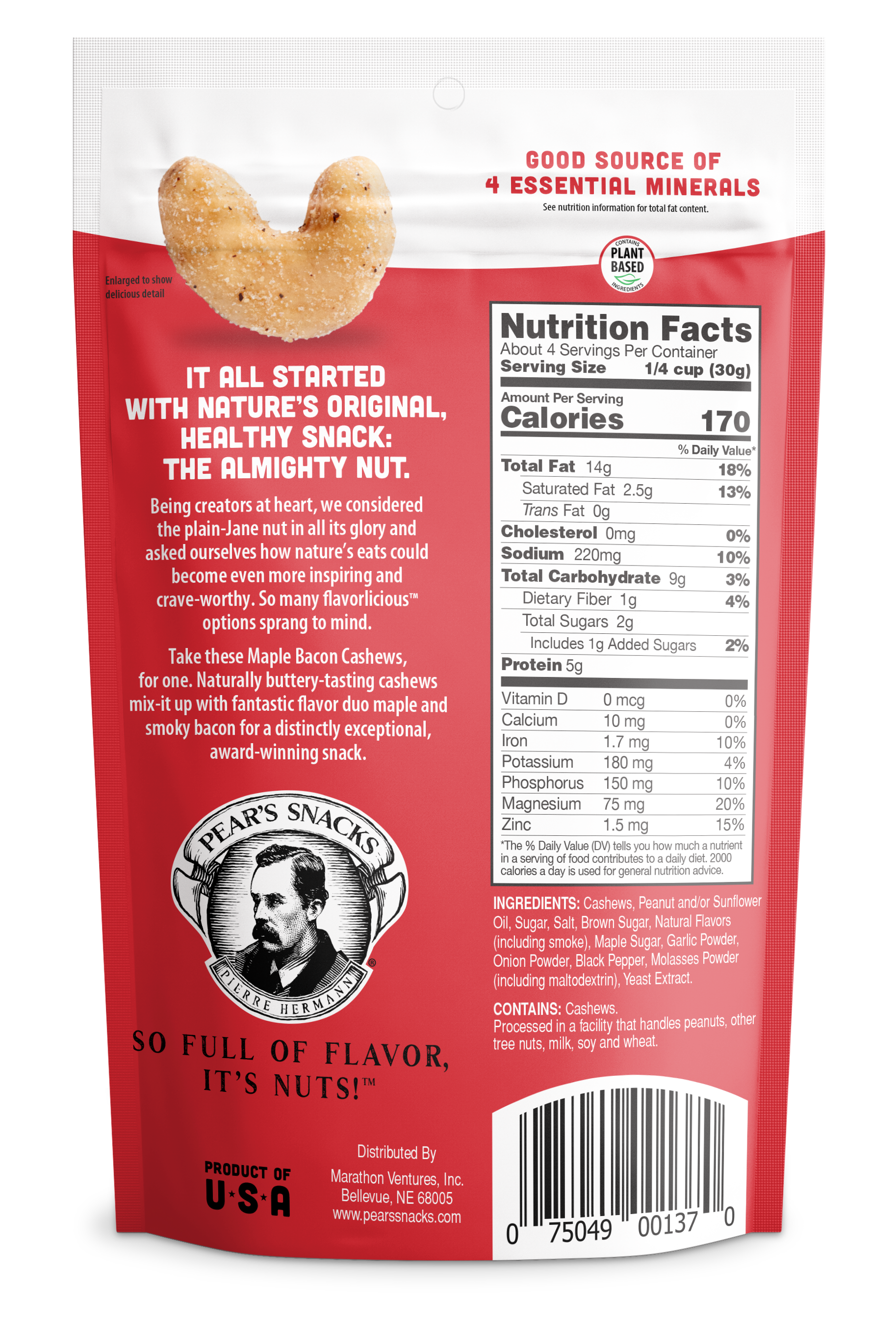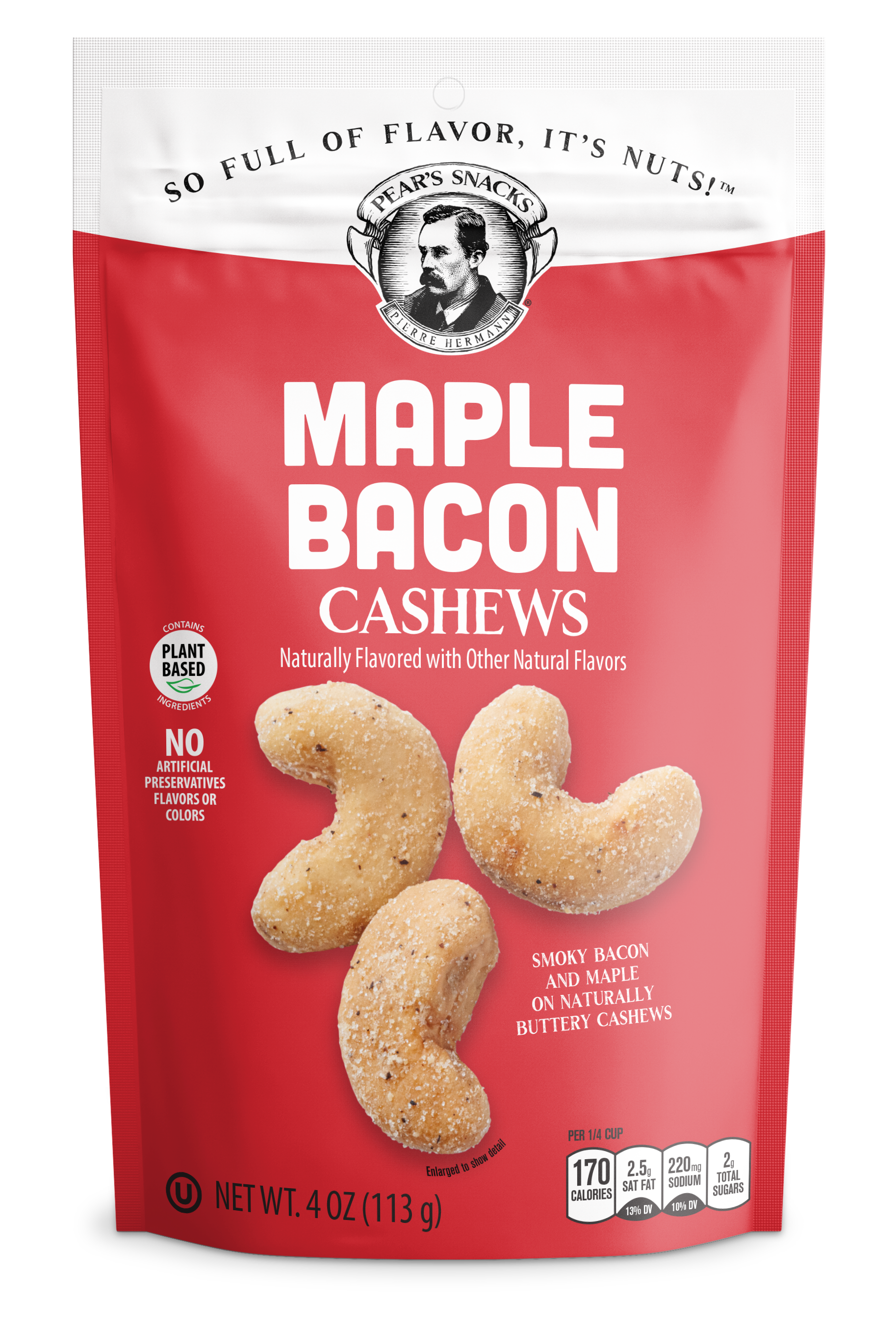You know that moment when maple syrup streams off your pancakes and onto your salty bacon...and you’re kind of jazzed about it? Naturally buttery-tasting cashews combine with fabulous maple and smoky bacon flavors to create this exceptionally tasty, no-more-waiting-for-Sundays snack.